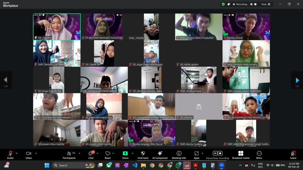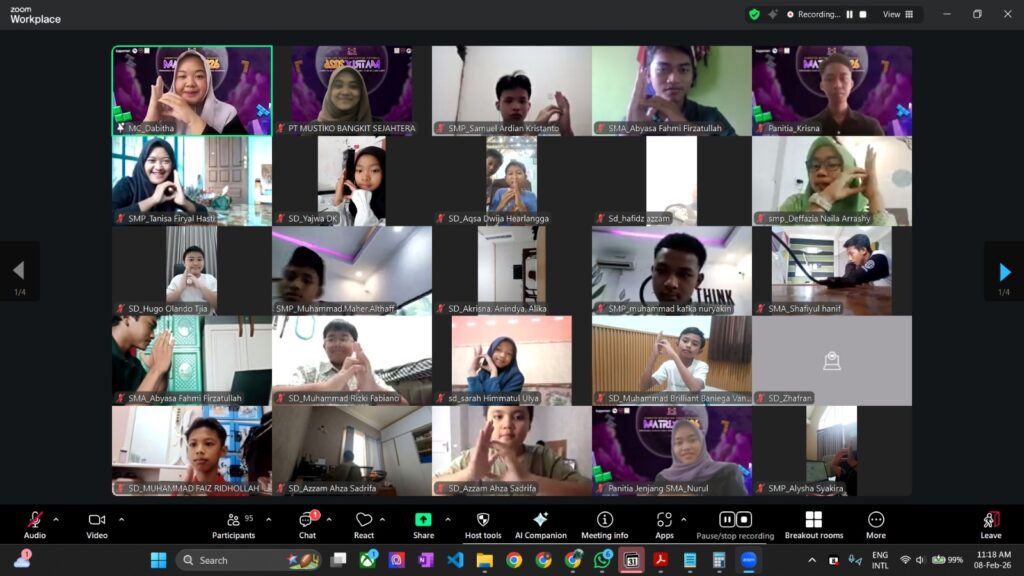 Pelaksanaan MATRIX 2026 dilakukan secara online dengan sistem yang terintegrasi dan pengawasan ketat. Seluruh peserta mengerjakan soal melalui platform WEB CAT, sementara pengawasan dilakukan secara langsung melalui Zoom Meeting guna memastikan kondisi peserta tetap kondusif selama proses pengerjaan soal berlangsung.